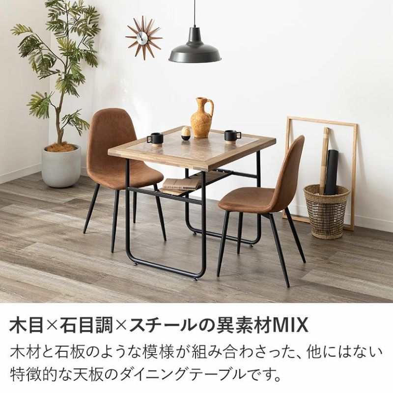 幅85cm ダイニングテーブル 石目調 メラミン天板 アイアン脚 棚付き 正方形 テーブル 2人用 食卓テーブル おしゃれ カフェ風 インダストリアル ブルックリン