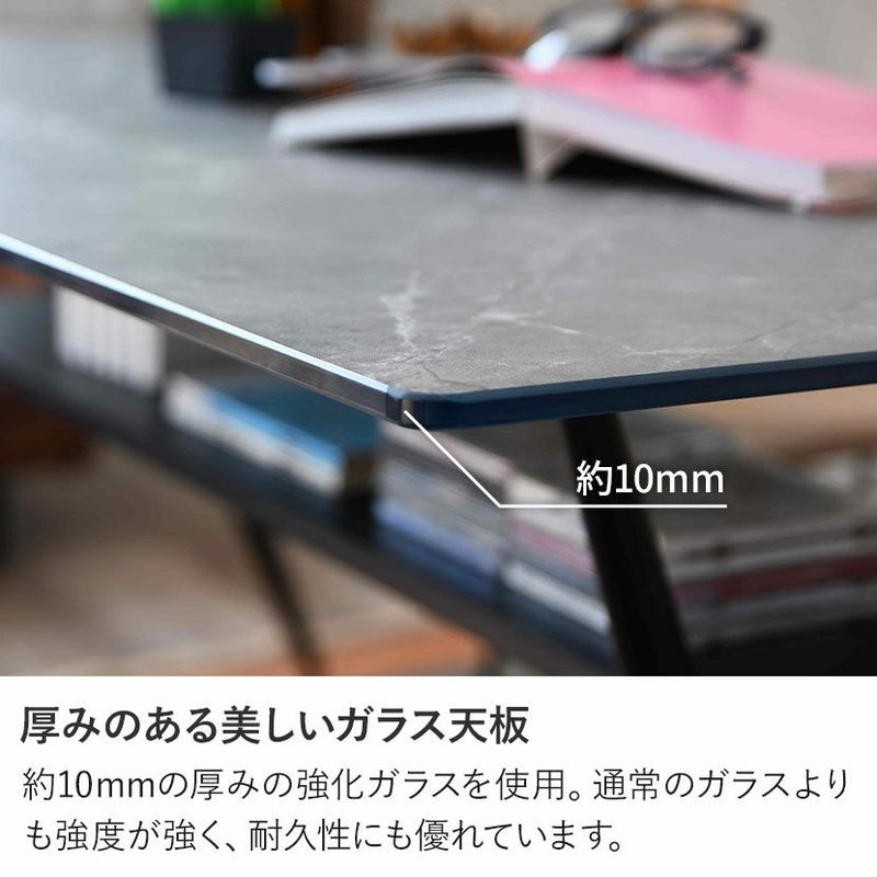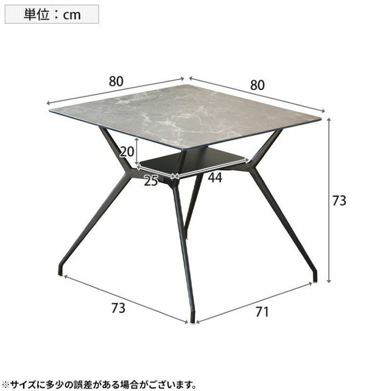 幅80cm 大理石柄 ダイニングテーブル スチール脚 ガラス天板 棚付き 正方形 石目調 テーブル 2人用 食卓テーブル カフェテーブル おしゃれ シンプル モダン グレー