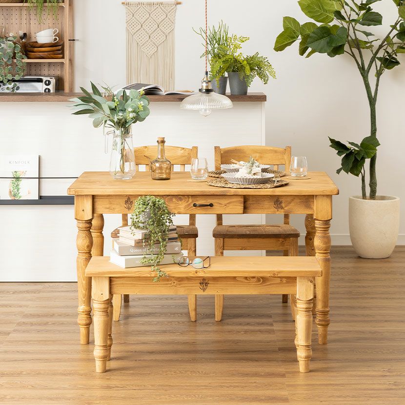 他の画像を見る 4人用 ダイニングテーブルチェアセット 4点セット (幅120cmテーブル1台+チェア2脚+ベンチ1脚) CFS1 食卓テーブル ダイニングチェア 食卓椅子 肘なし カントリー 北欧 送料無料 送料無料 ¥ 116,900 税込 カートに入れる