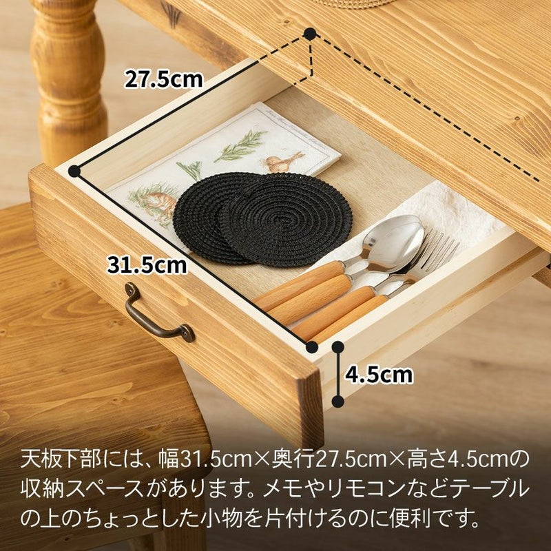 天板下部には、幅31.5cm×奥行27.5cm×高さ4.5cmの収納スペースがあります。