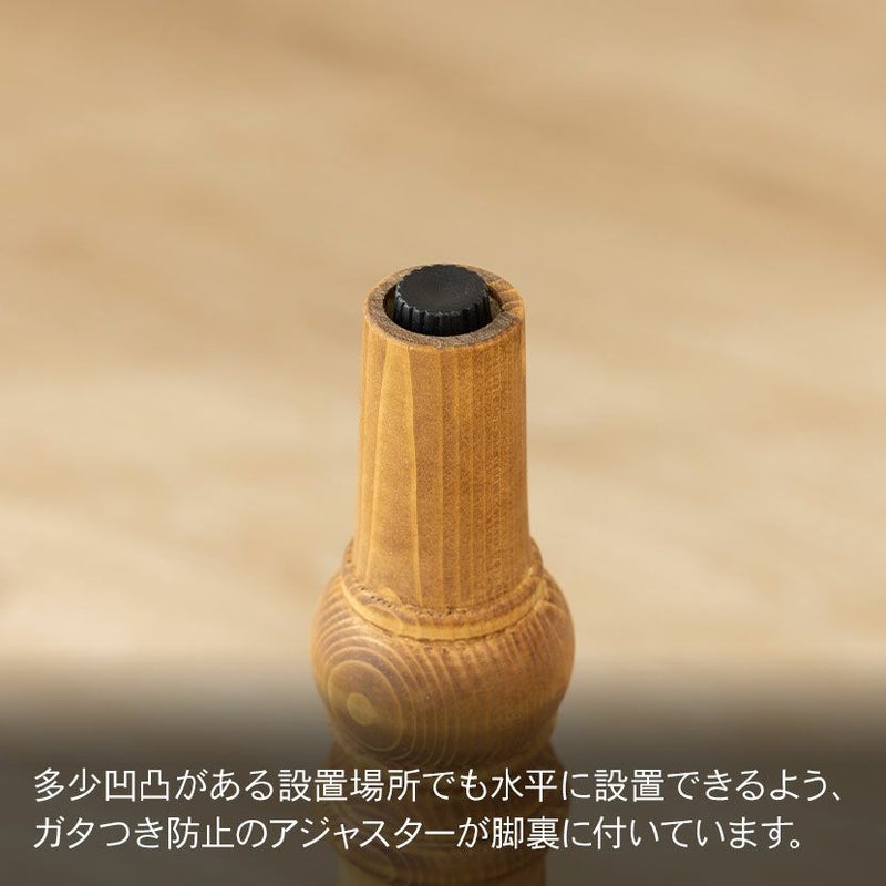 多少凹凸がある設置場所でも水平に設置できるよう、ガタつき防止のアジャスターが脚裏に付いています。