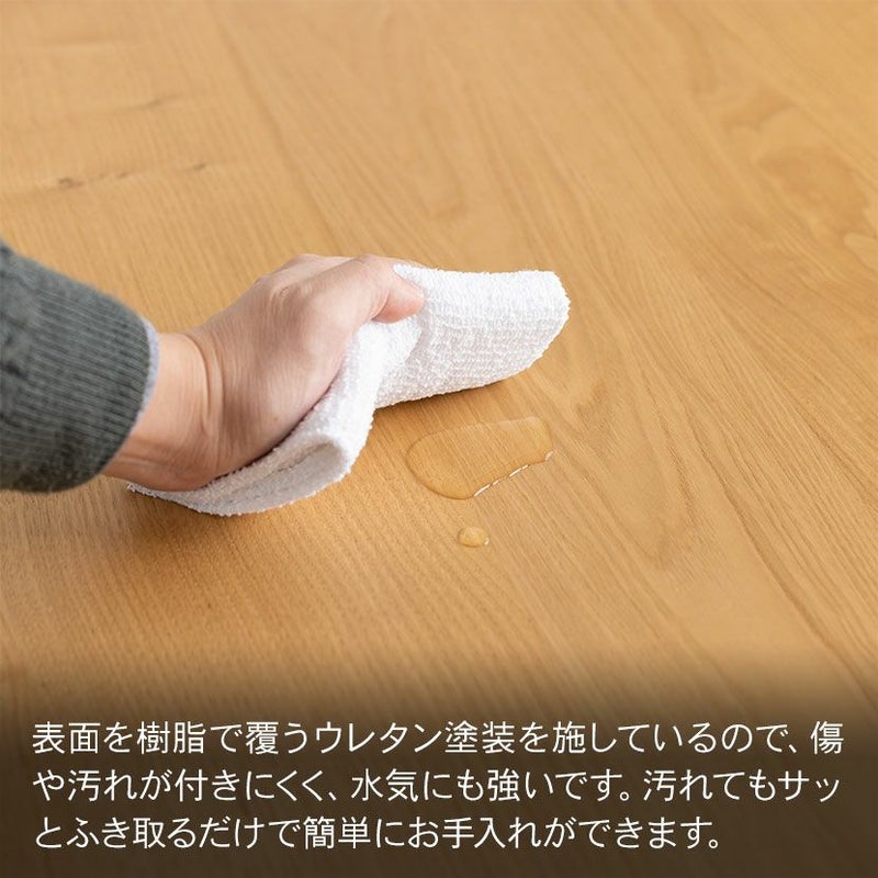 ●表面を樹脂で覆うウレタン塗装を施しているので、傷や汚れが付きにくく、水気にも強いです。