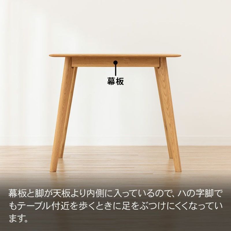 ●脚と幕板が天板より内側に入っているので、ハの字脚でもテーブル付近を歩くときに足をぶつけにくいです。