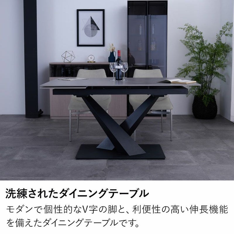 モダンで個性的なV字の脚と、利便性の高い伸長機能を備えたダイニングテーブルです。