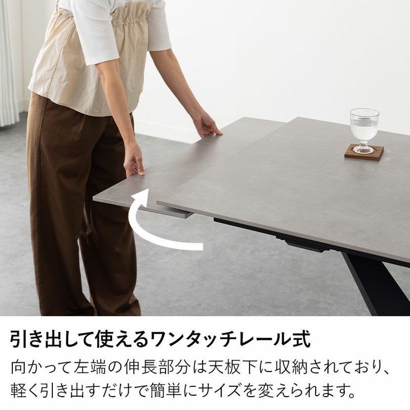 向かって左端の伸長部分は天板下に収納されており、軽く引き出すだけで簡単にサイズを変えられます。