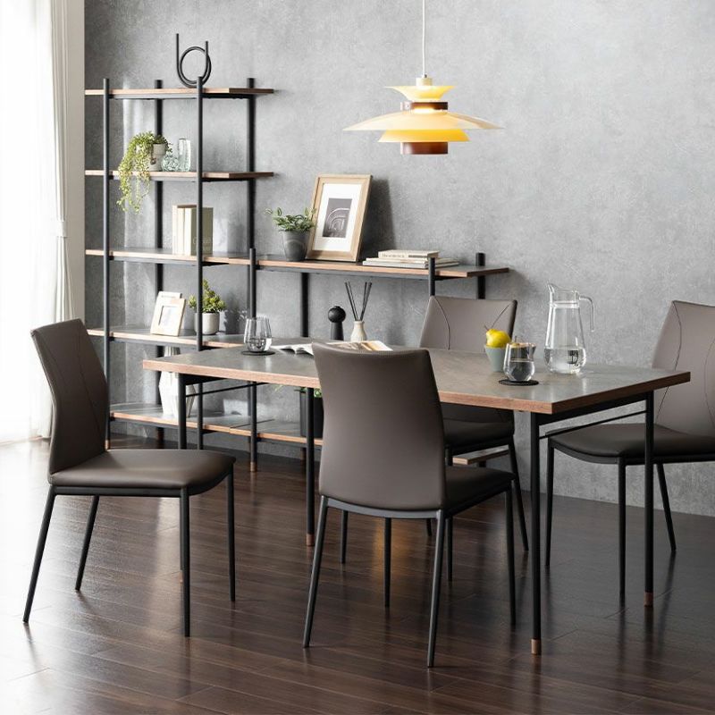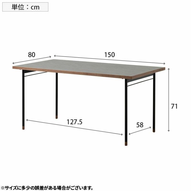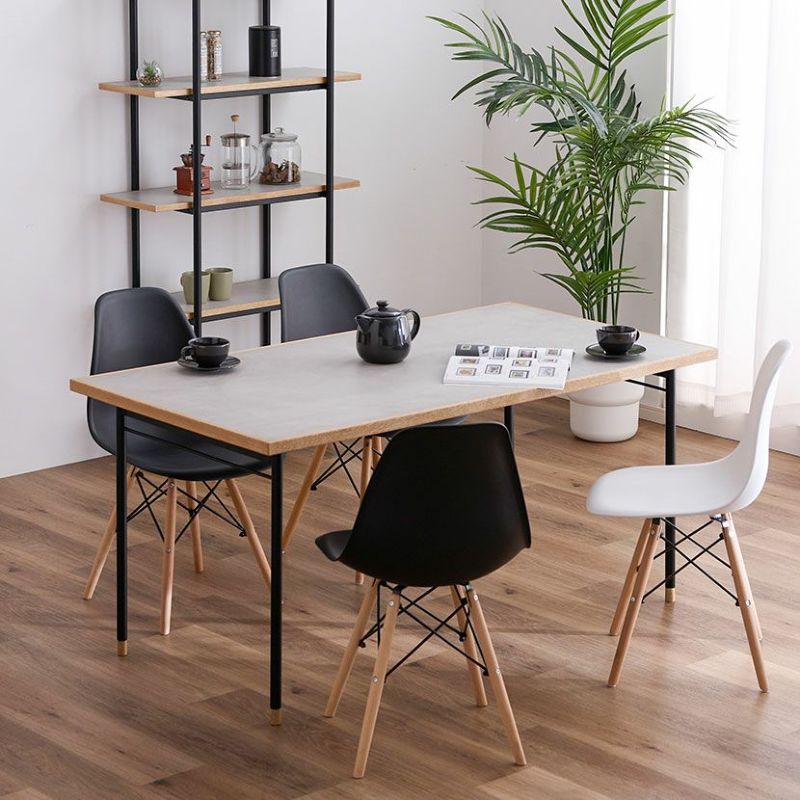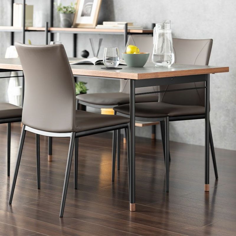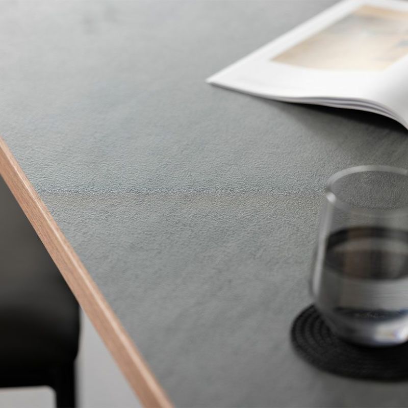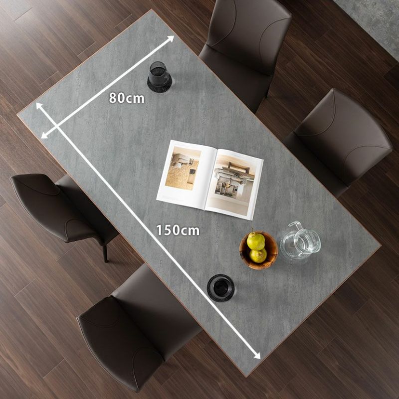 キズや汚れに強い低圧メラミンを使用したダイニングテーブル。異素材を使ったモダンデザインです。