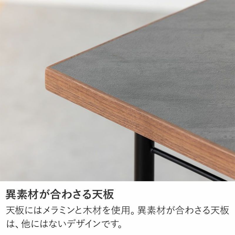 天板にはメラミンと木材を使用。異素材が合わさる天板は、他にはないデザインです。