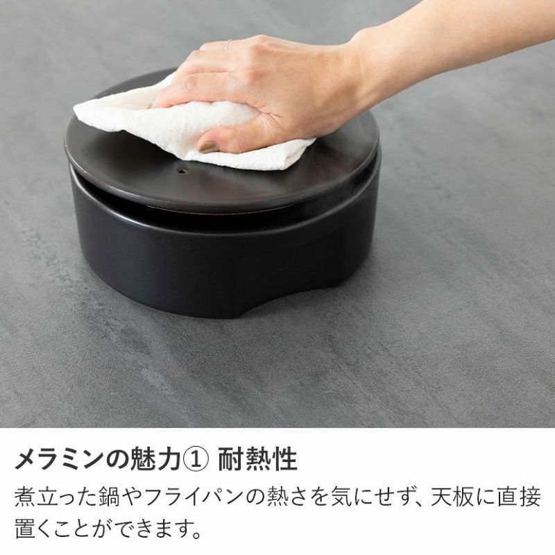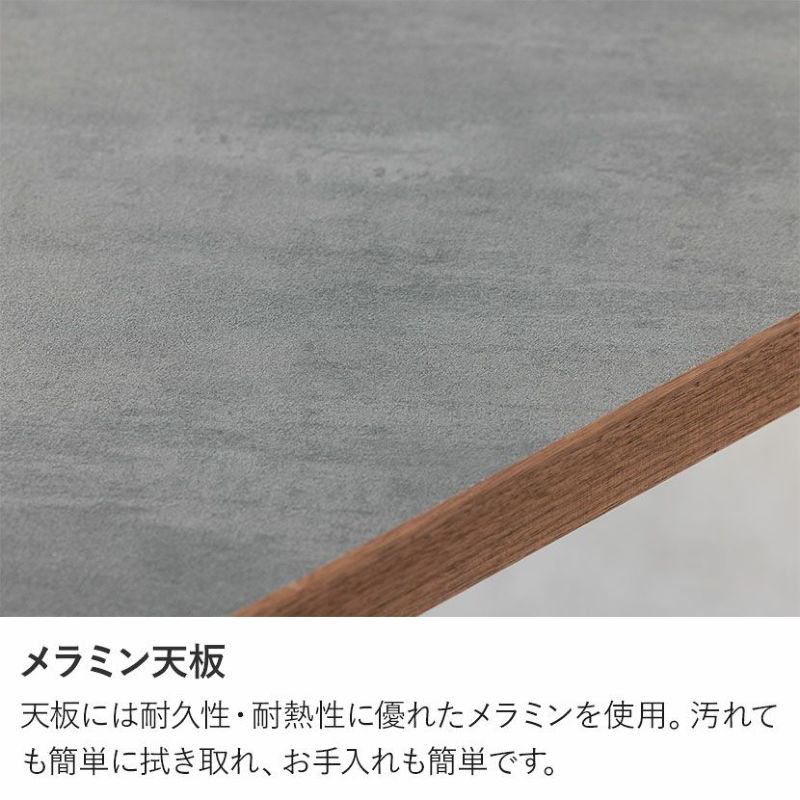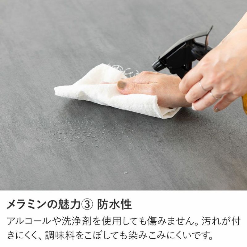 天板には耐久性・耐熱性に優れたメラミンを使用。汚れても簡単に拭き取れ、お手入れも簡単です。