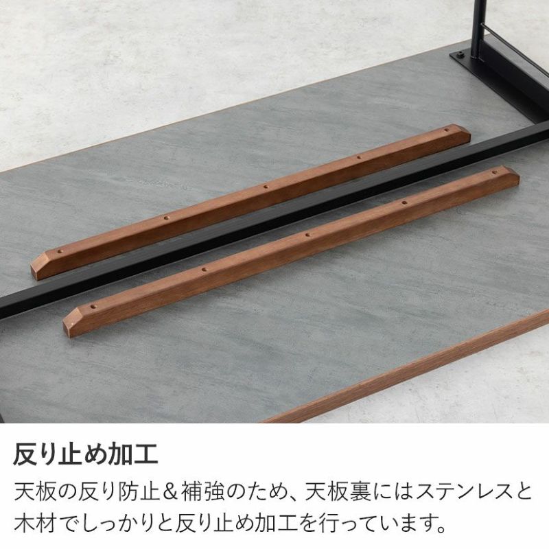 天板の反り防止&補強のため、天板裏にはステンレスと木材でしっかりと反り止め加工を行っています。