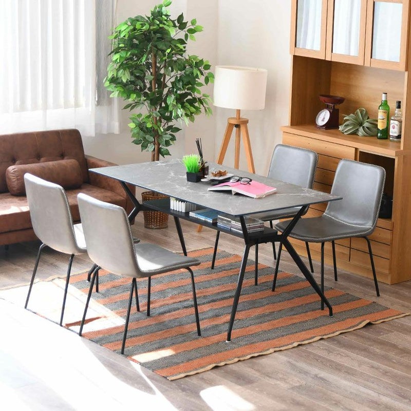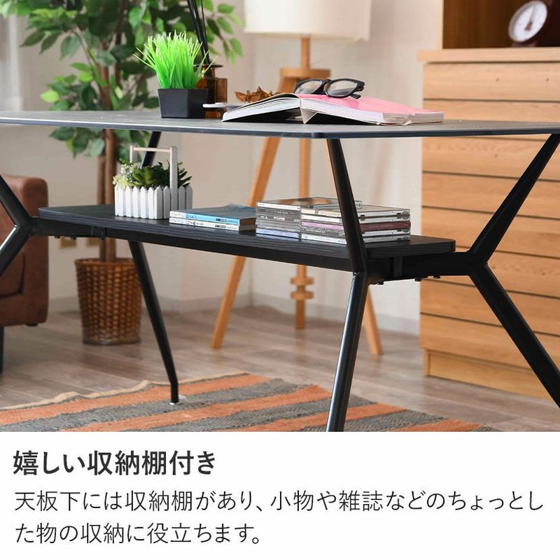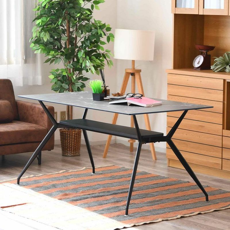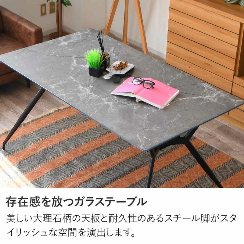 幅140cm 大理石柄 ダイニングテーブル スチール脚 ガラス天板 棚付き 長方形 石目調 テーブル 4人用 食卓テーブル カフェテーブル おしゃれ シンプル モダン グレー