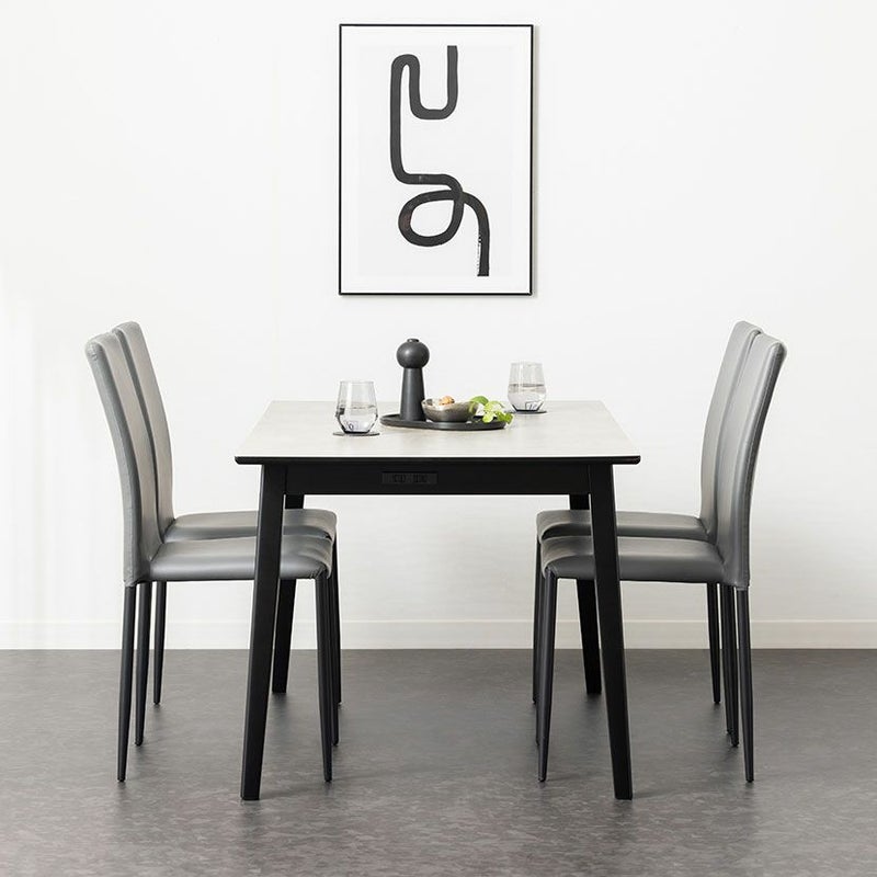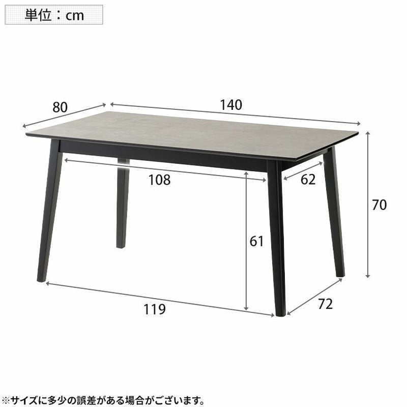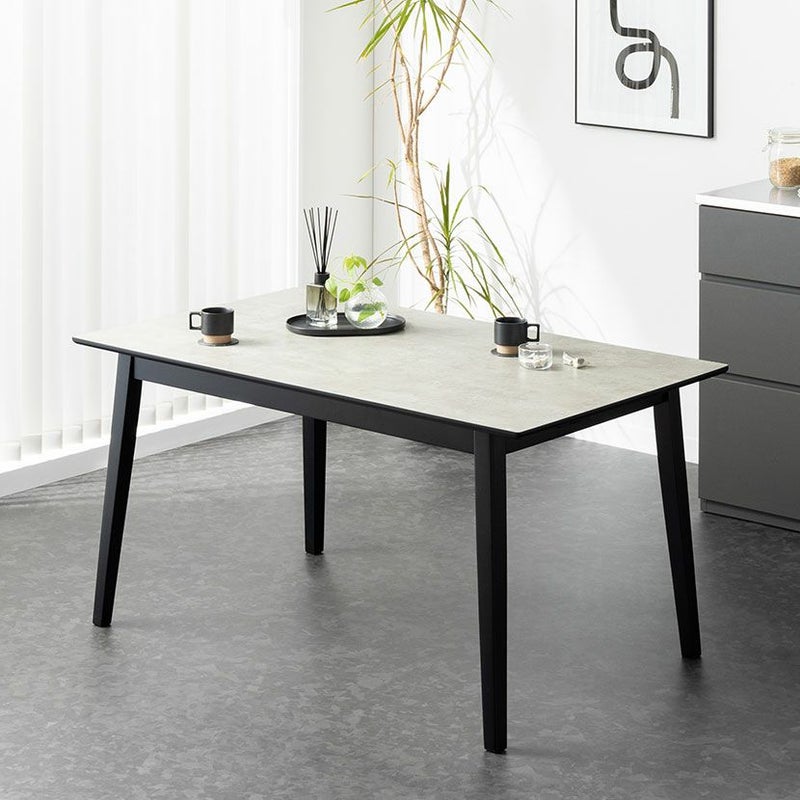 モルタル調の天板とブラック色の脚がモダンテイストの空間を演出するダイニングテーブルです。