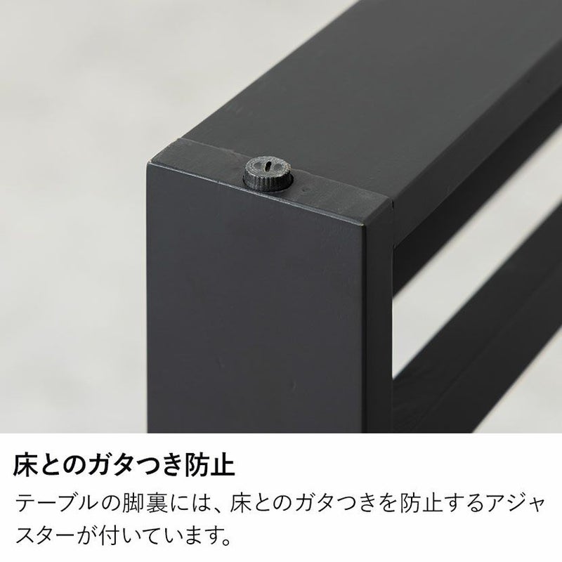 テーブルの脚裏には、床とのガタつきを防止するアジャスターが付いています。