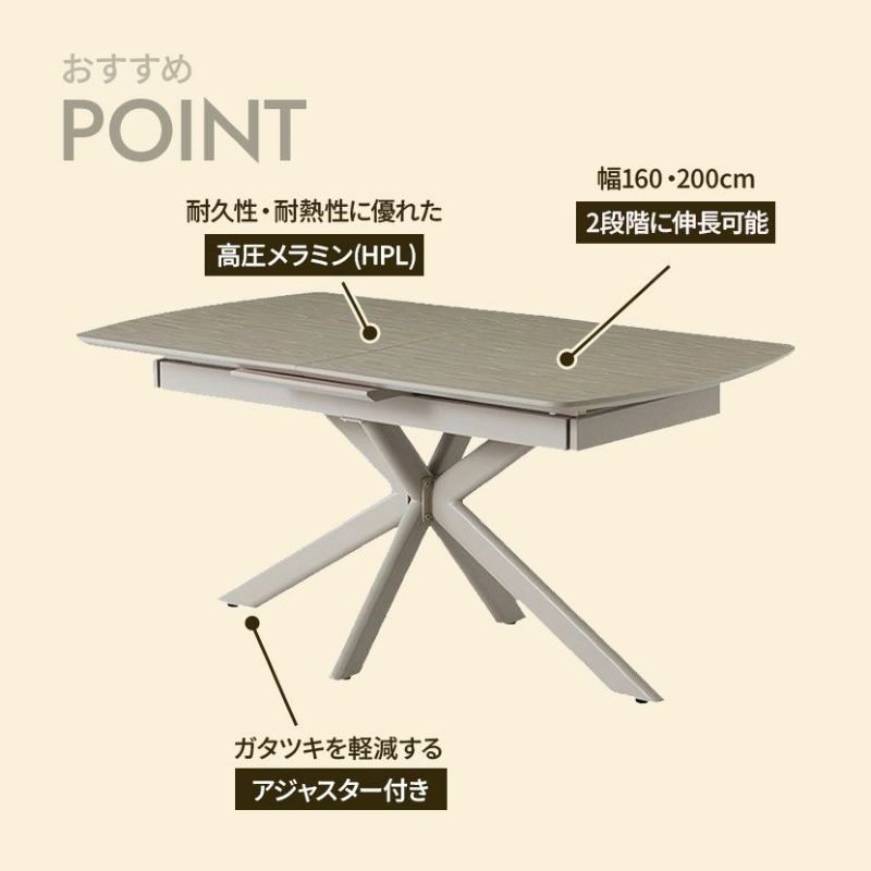普段は4人用にぴったりの幅160cm、来客時などには6人でもゆったりと使える幅200cmへと、簡単に天板を伸長できます。