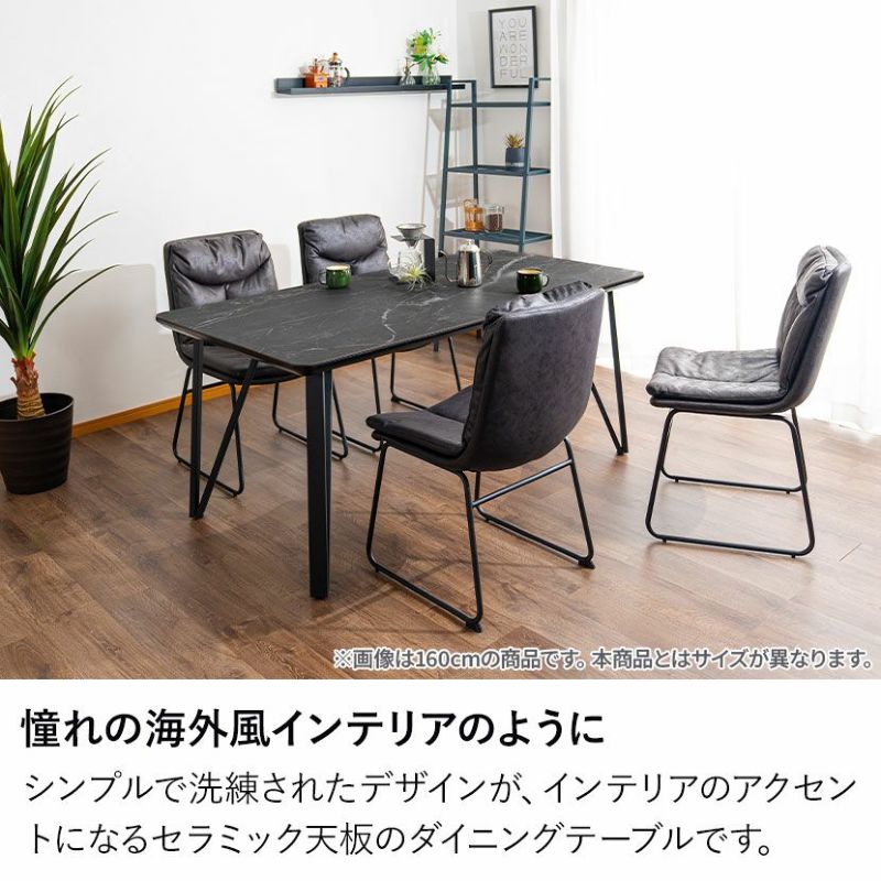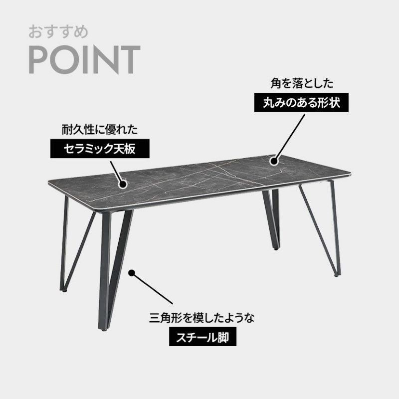 高機能なセラミック天板と、洗練されたデザインのスチール脚を組み合わせた、幅180cmのセラミックダイニングテーブル。