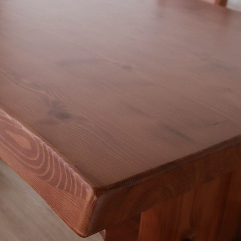 良質の北欧パイン材をふんだんに使用し造られたフォレストシリーズ。寒く厳しい環境の中で育つため成長が遅く年輪が太くなりません。そのため密な年輪となり美しい木目を生み出します。天板の側面には、なぐり加工を採用、重厚感をもたせたデザインにしています。人と環境にやさしい水性塗料を使用。食品と同レベルの高い安全性を誇るドイツのOSMO社天然オイルを使用。審査基準の高いと言われているドイツで安心基準値をクリア。小さいお子様にも安心です。また使い込む程に、色が重なり風合いが出てくるのも楽しんで頂けたらと思います。