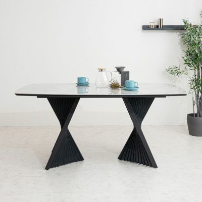 幅140cm 大理石柄 ダイニングテーブル スチール脚 ガラス天板 棚付き 長方形 石目調 テーブル 4人用 食卓テーブル カフェテーブル おしゃれ シンプル モダン グレー