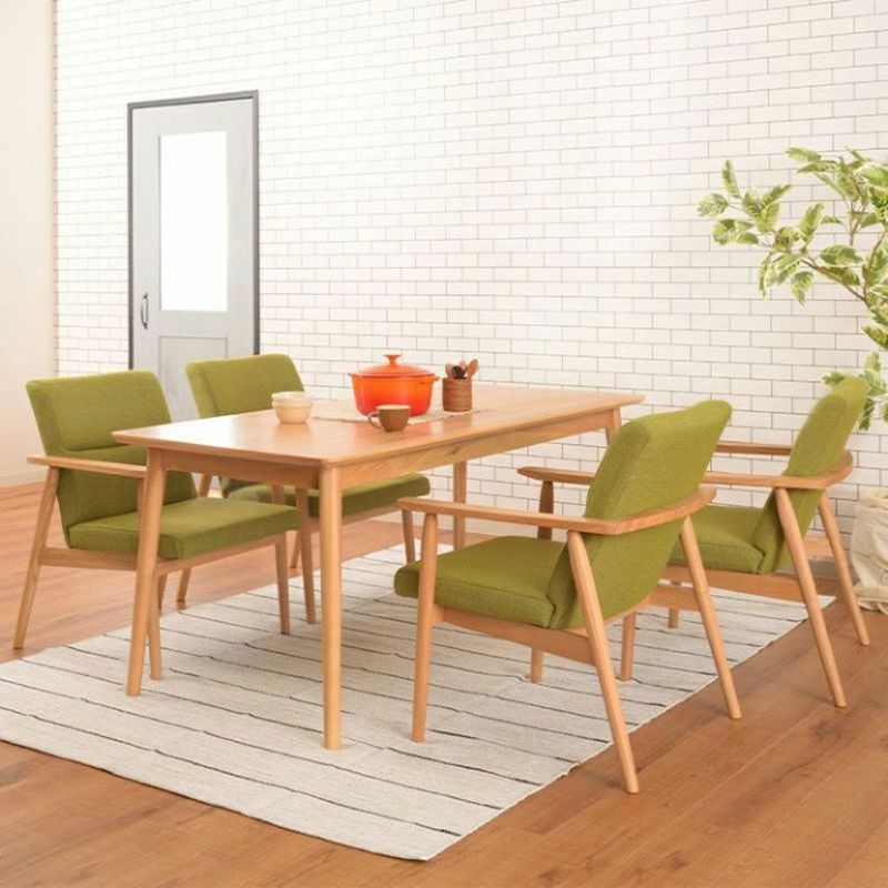 4人用 ダイニングテーブルセット 5点 天然木 木製 食卓テーブル 肘付き ダイニングチェア 食卓椅子 おしゃれ 北欧 カフェ風 ナチュラル (幅150cm テーブル×1 チェア×4) ルンバブル 送料無料 送料無料 ¥ 129,900 税込
