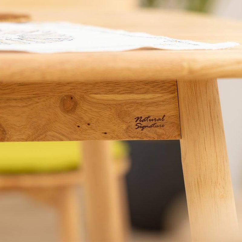 温もりのある天然木無垢材をふんだんに使用したナチュラルシグネチャーシリーズ。シンプルで飽きのこない北欧風デザインが魅力です。滑らかな手触りと自然の木目や風合いが美しいのも特徴です、天然木ラバーウッド材を使用しているため、この世にふたつとない、一台一台と違った木目の表情などが楽しめます。製品により箇所は異なりますが、NaturalSignatureの刻印が刻まれているのが、なんともカッコイイですね。