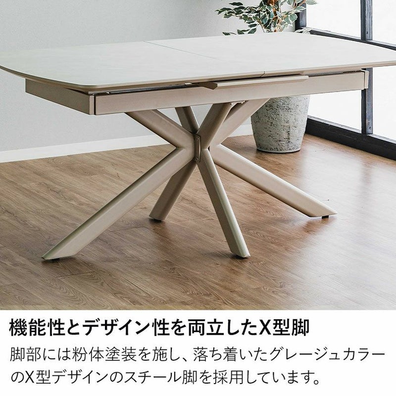 上品な大理石調の天板に、柔らかなグレージュカラーのX型脚を合わせました。