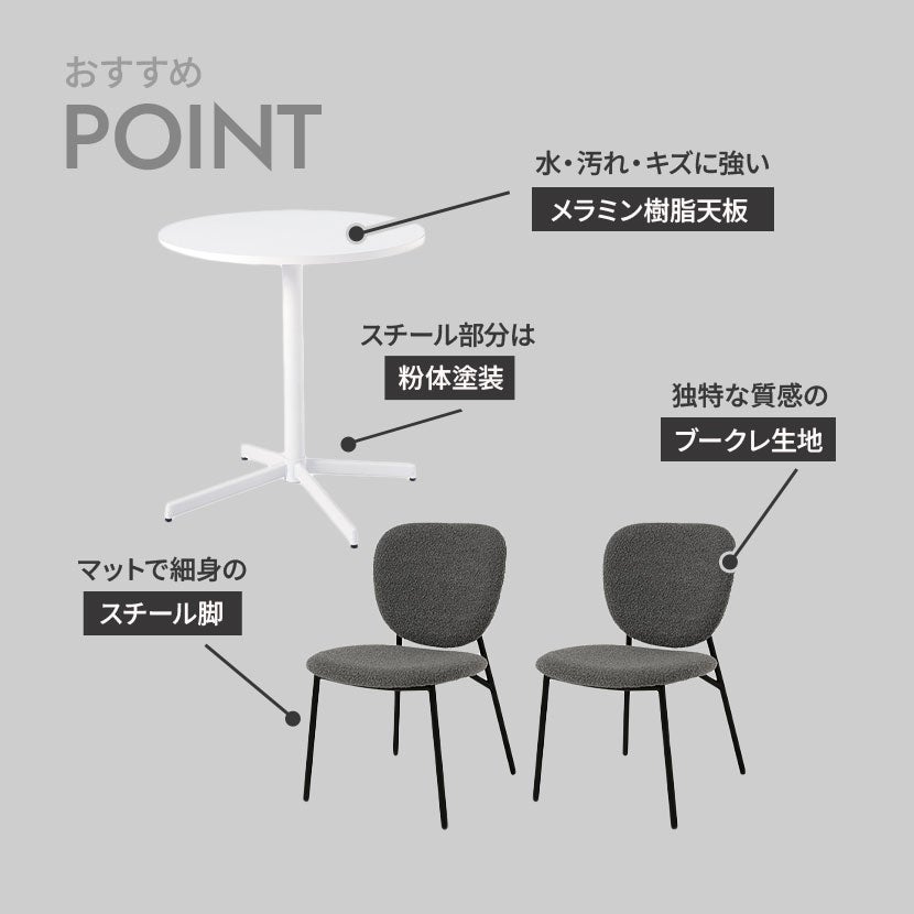 他の画像を見る 2人用 ダイニングテーブルセット 3点 コンパクト メラミン 丸型 テーブル おしゃれ チェア 肘なし ブークレ生地 北欧 モダン(幅65cm 円形 食卓テーブル×1 食卓椅子×2) クーポン対象 クーポン対象 送料無料 送料無料 ¥ 26,900 税込 カートに入れる