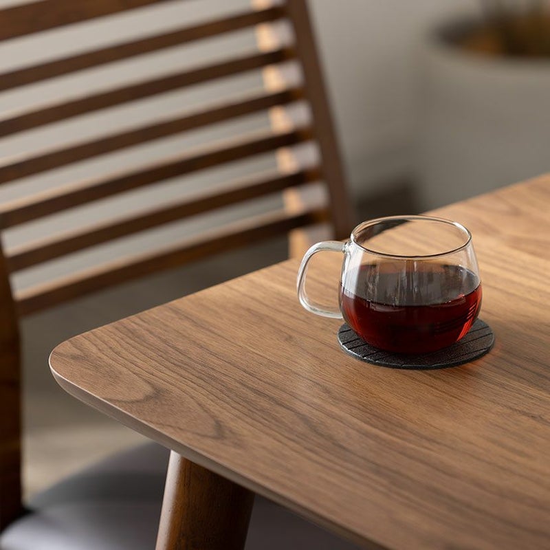 深みのある色合いで、はっきりとした木目が特徴のウォルナットの突板を使用した天板です。