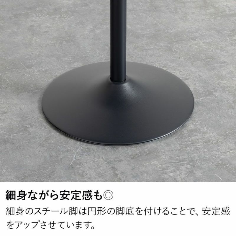 細身のスチール脚は円形の脚底を付けることで、安定感をアップさせています。