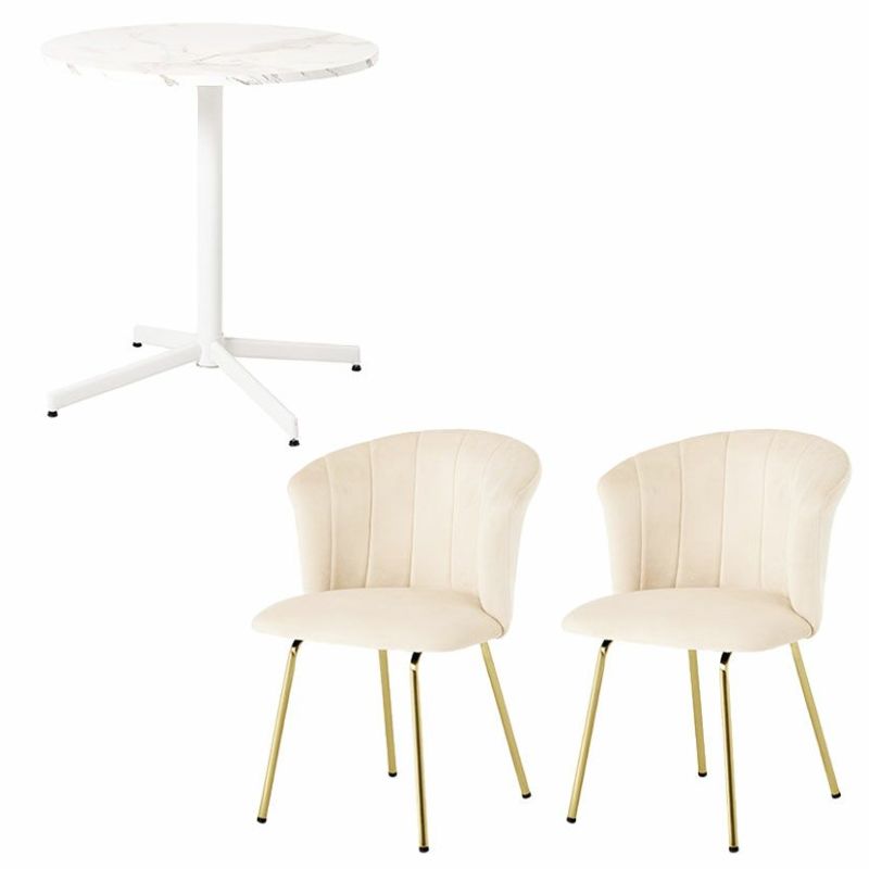 2人用 ダイニングテーブルセット 3点 大理石調 丸テーブル コンパクト 肘なし ダイニングチェア モダン おしゃれ エレガント カフェセット (幅65cm 円形 食卓テーブル×1 食卓椅子×2) クーポン対象 クーポン対象 送料無料 送料無料 ¥ 33,900 税込