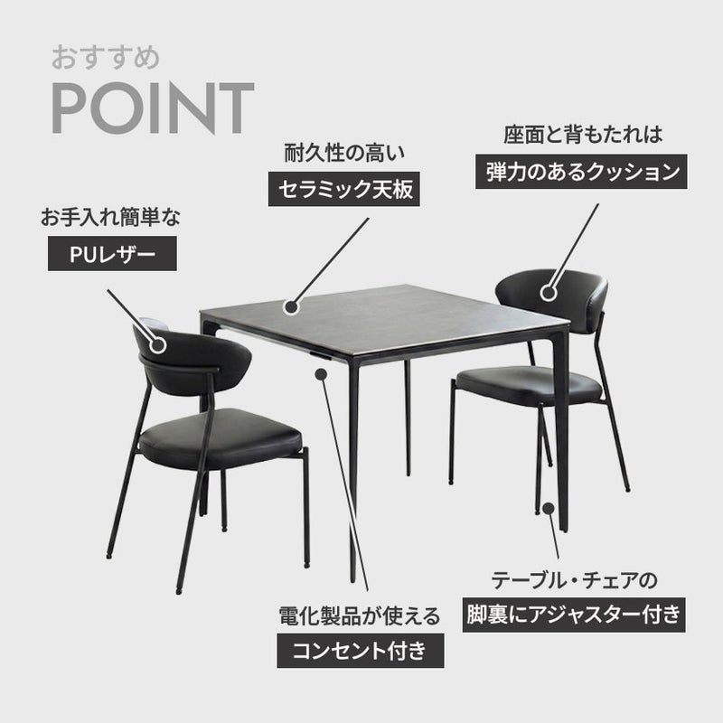 【設置無料】2人用 ダイニングテーブルセット 3点 ORV コンセント付き セラミックテーブル モダン ダイニングチェア おしゃれ ダイニングセット (幅90cm 食卓テーブル×1 食卓椅子×2)