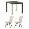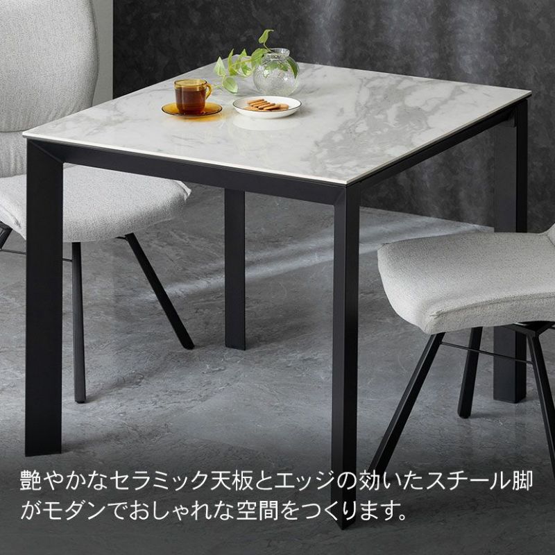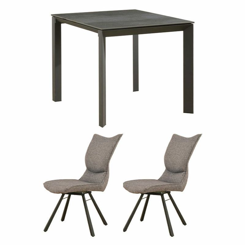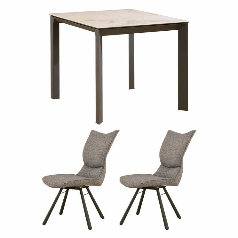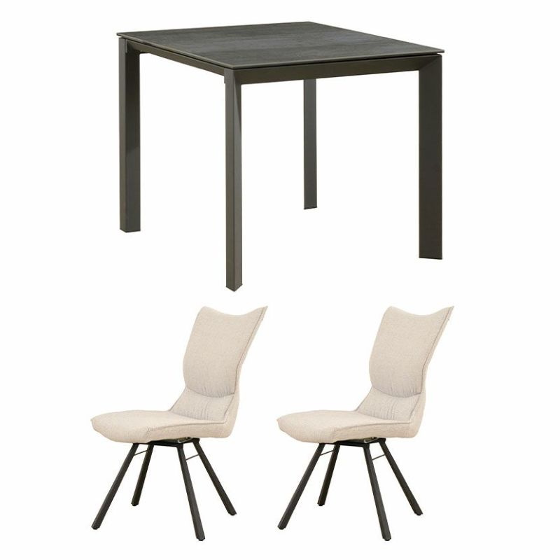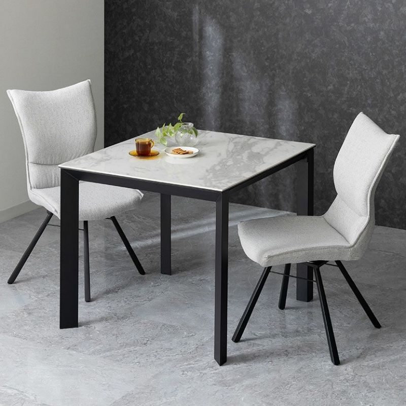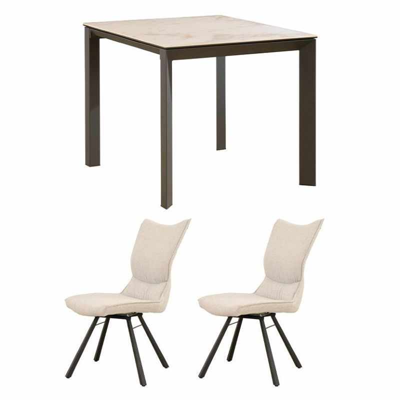 2人用 ダイニングテーブルセット 3点 (幅90cm セラミックテーブル×1 回転チェア×2) グラナダ 大理石調 ダイニングテーブル ポワレ 布張り ダイニングチェア モダン