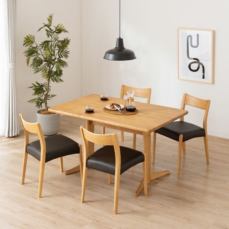 【設置無料】4人用 ダイニングテーブルセット(2本脚) 5点 シンプルスタンダード 木製 テーブル 肘なし コンパクト ダイニングチェア おしゃれ 北欧 (幅130cm 食卓テーブル×1 食卓椅子×4)