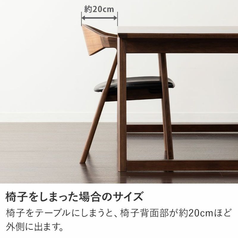 椅子をテーブルにしまうと、椅子背面部が約20cmほど外側に出ます。