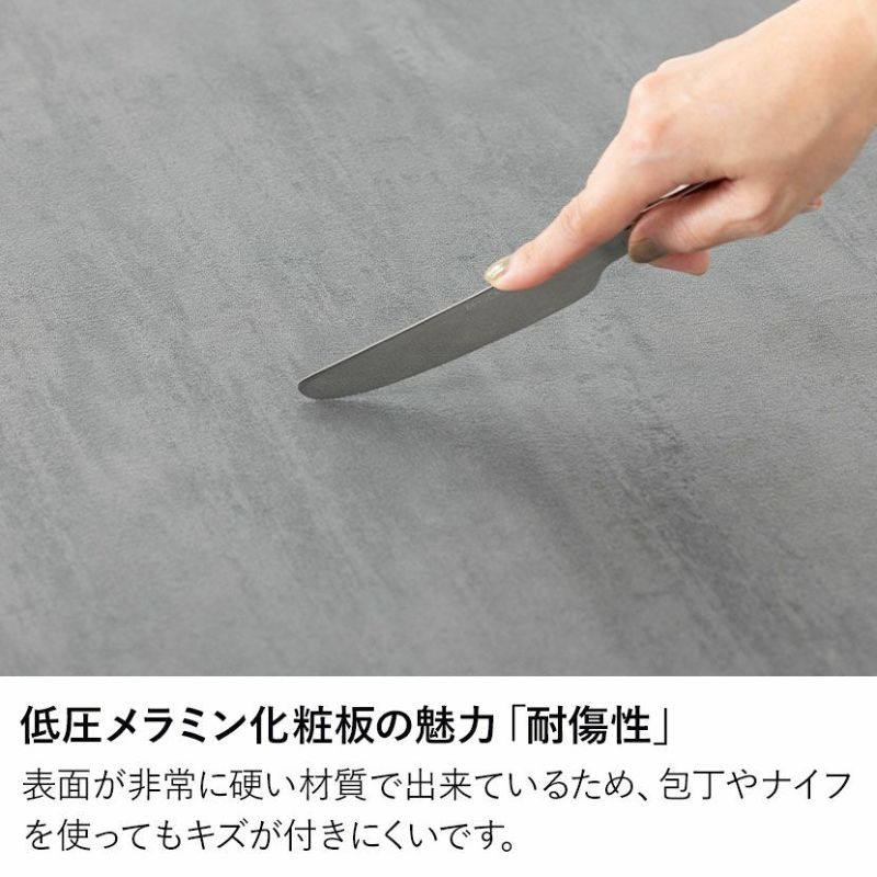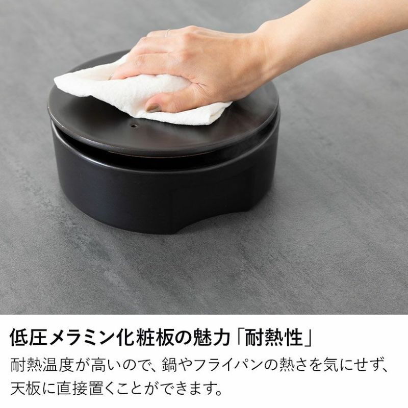 天板には耐久性・耐熱性に優れた低圧メラミン化粧板を使用。汚れなども簡単に拭き取れます。