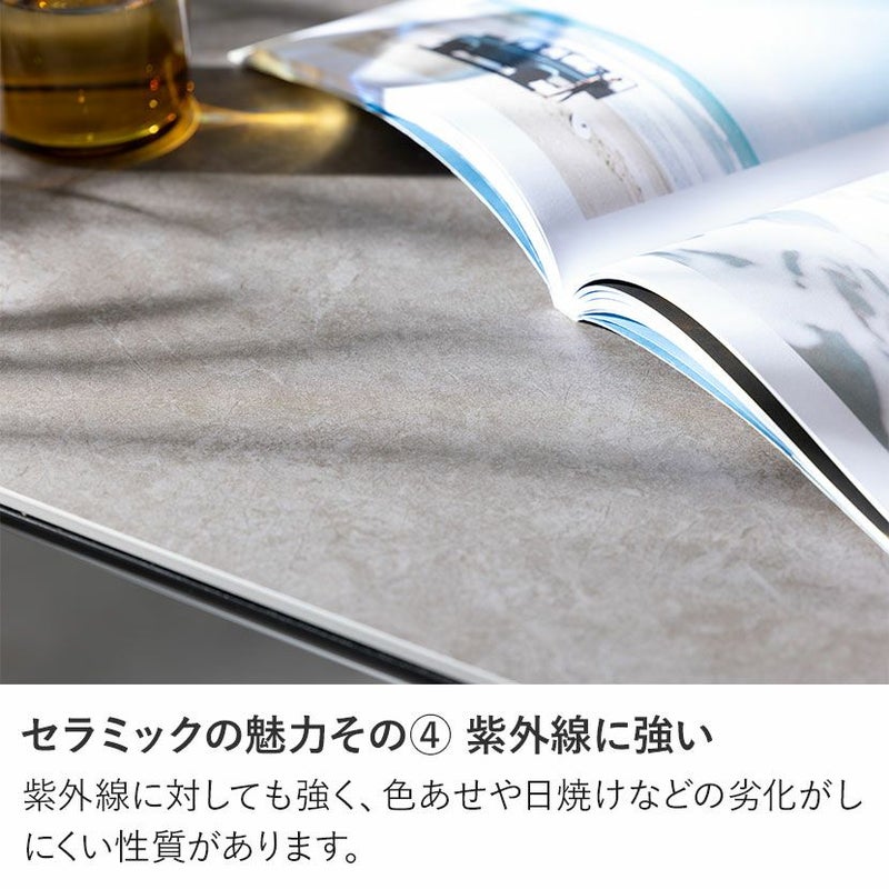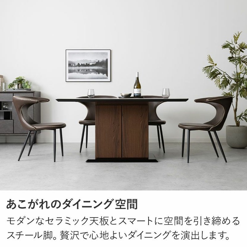 モダンなセラミック天板とスマートに空間を引き締めるスチール脚。贅沢で心地よいダイニングを演出します。
