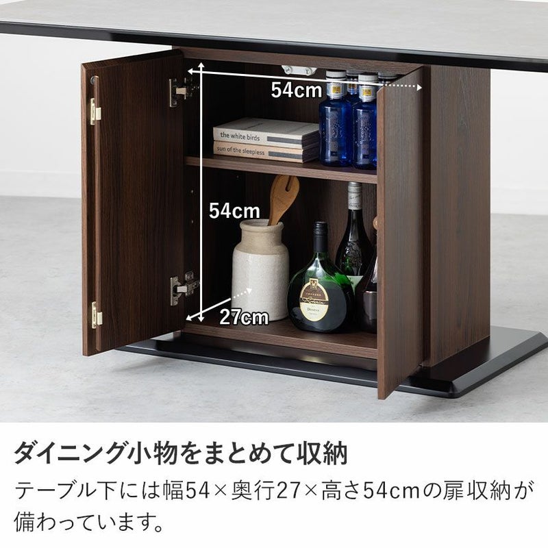 テーブル下には幅54×奥行27×高さ54cmの扉収納が備わっています。