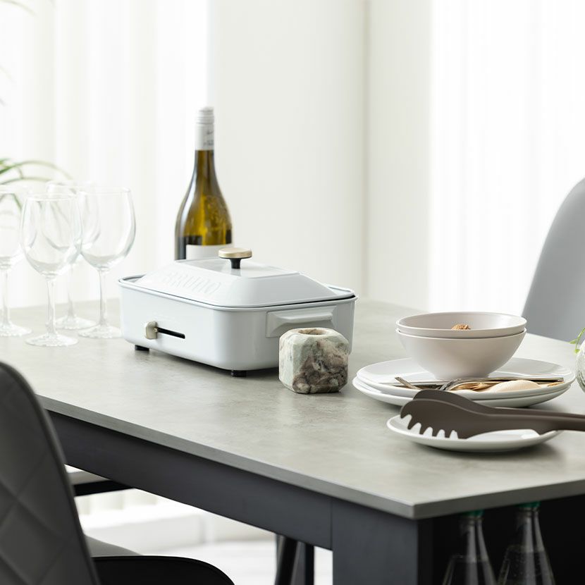 熱い食器を直接天板に置いても変形したり跡が残りにくいため、食事の際に気を使う必要がありません。