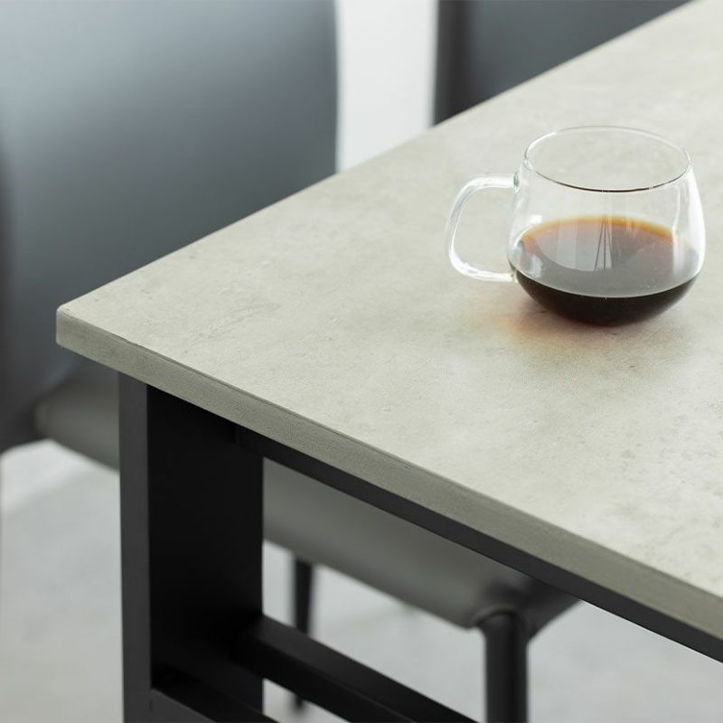 モルタル調の天板には耐久性・耐熱性に優れたメラミンを使用。汚れても簡単に拭き取れ、お手入れも簡単です。
