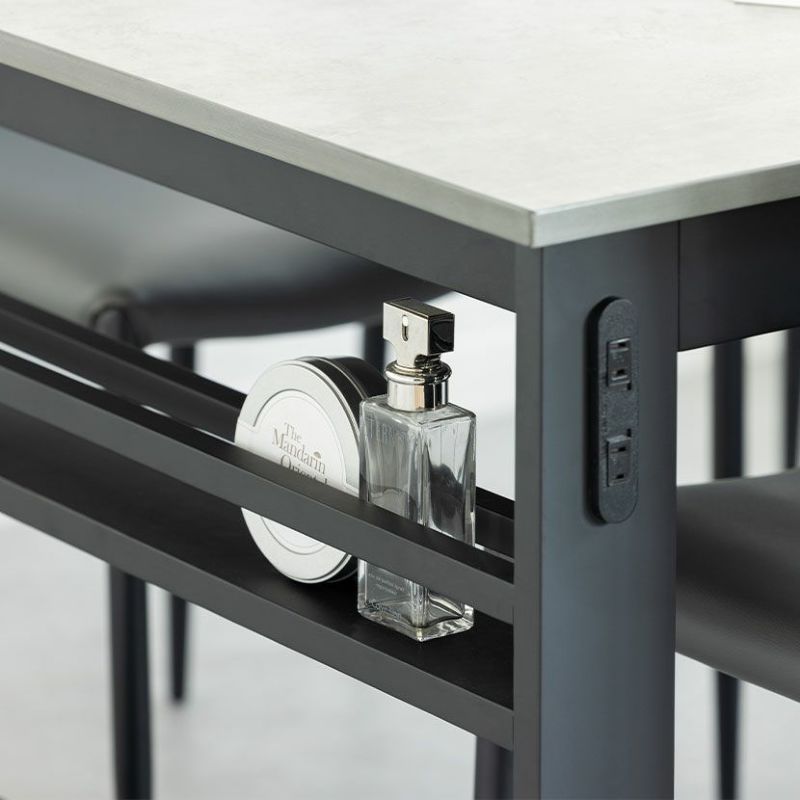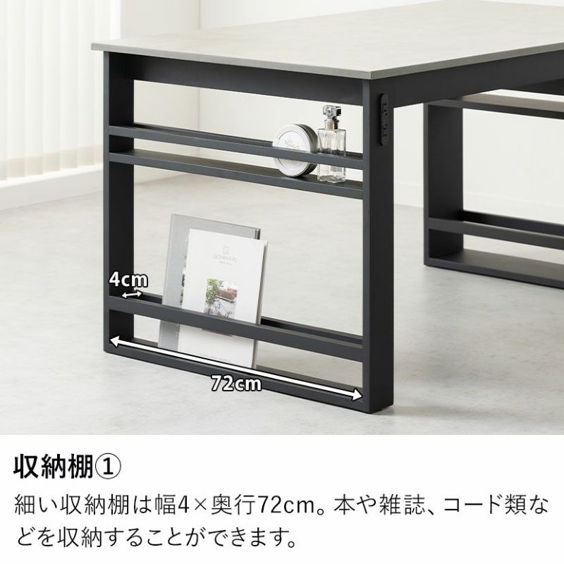 コンセント付きなので、モニターやパソコンなどを繋いでワークテーブルとしても使用できます。