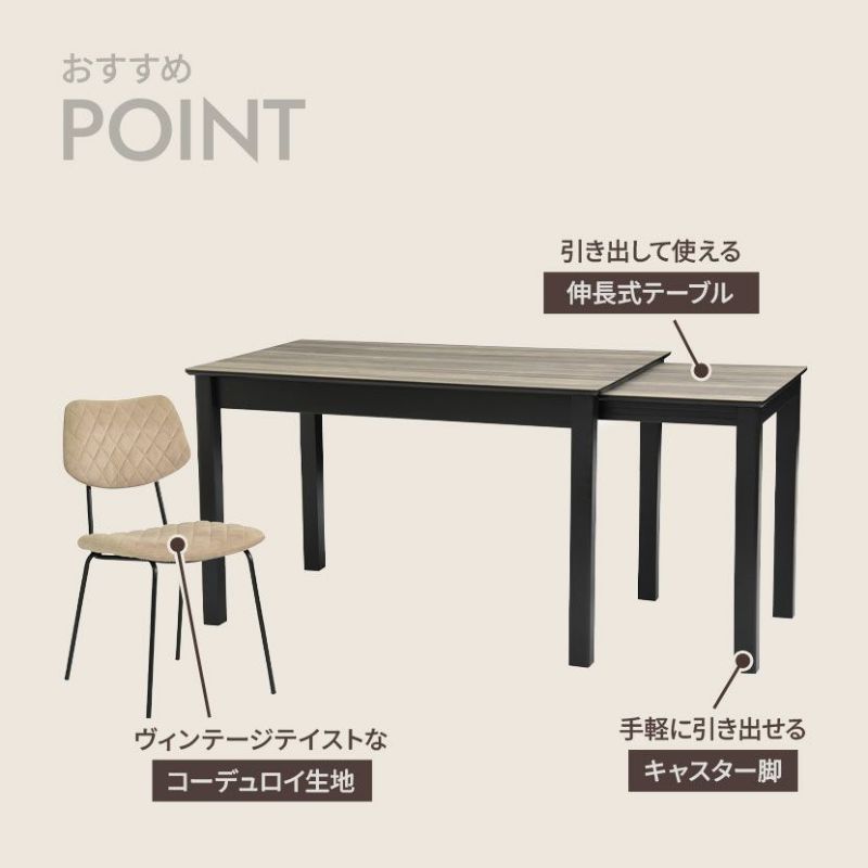 グレーカラーの木目が美しい、伸長式のダイニングテーブルセット。来客時や補助テーブルとしても便利です。