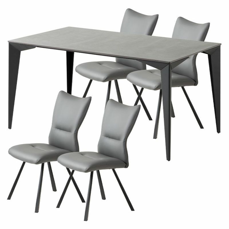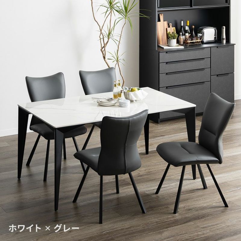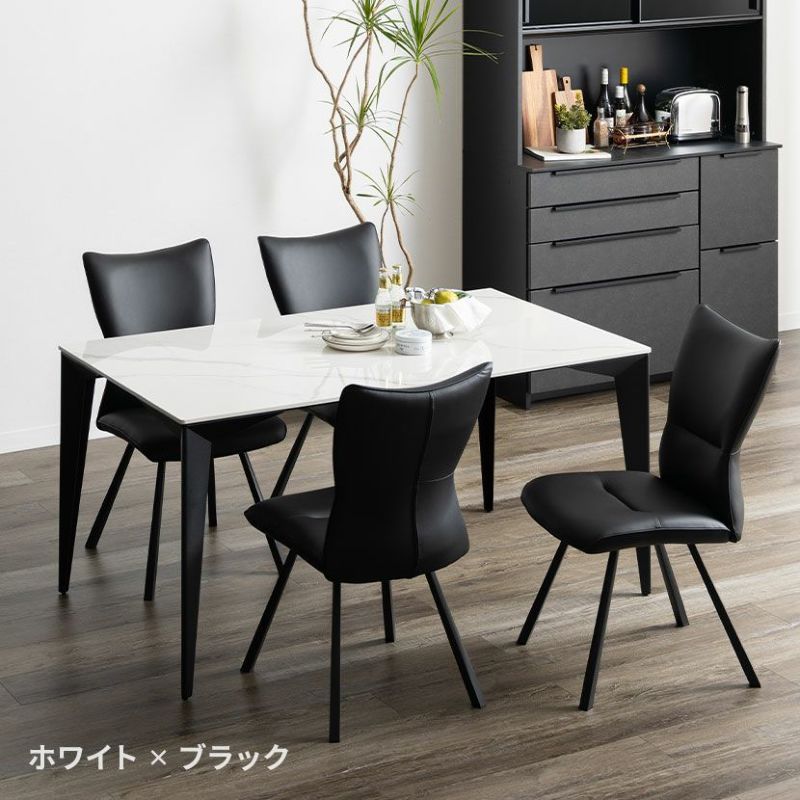 立体感のある特徴的なデザインのスチール脚とセラミック天板を組みあわせたモダンなダイニングテーブル。