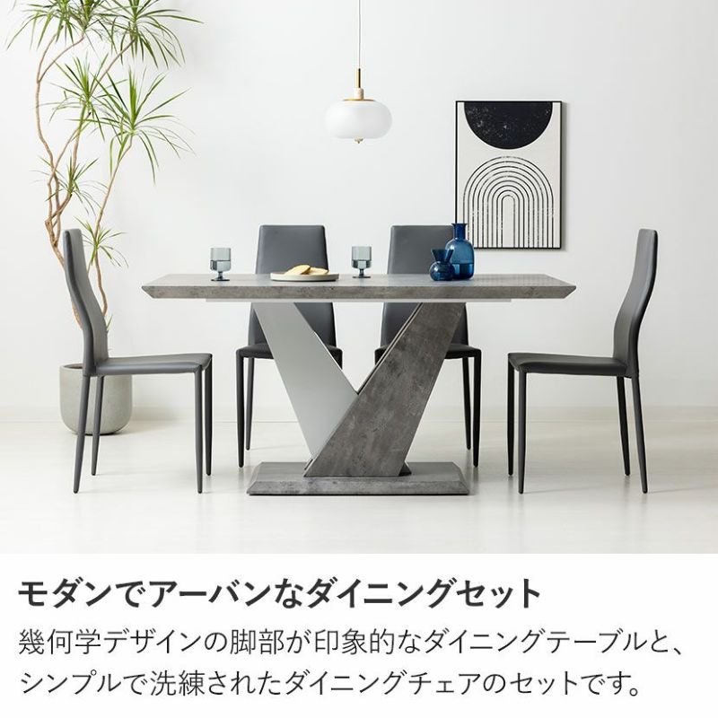 幾何学デザインの脚部が印象的なダイニングテーブル。大理石調の質感も相まって大胆なデザインが特徴です。