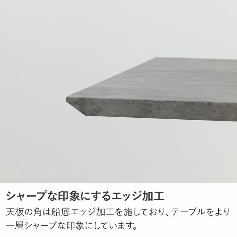 天板の角は船底エッジ加工を施しており、テーブルをより一層シャープな印象にしています。