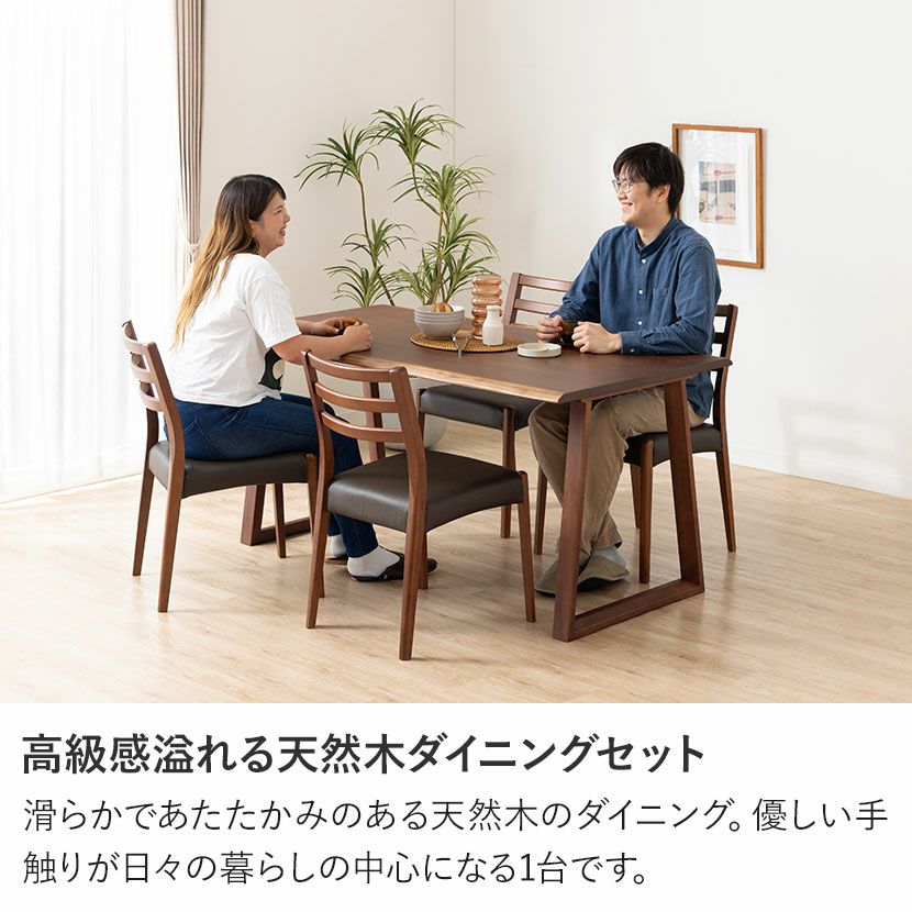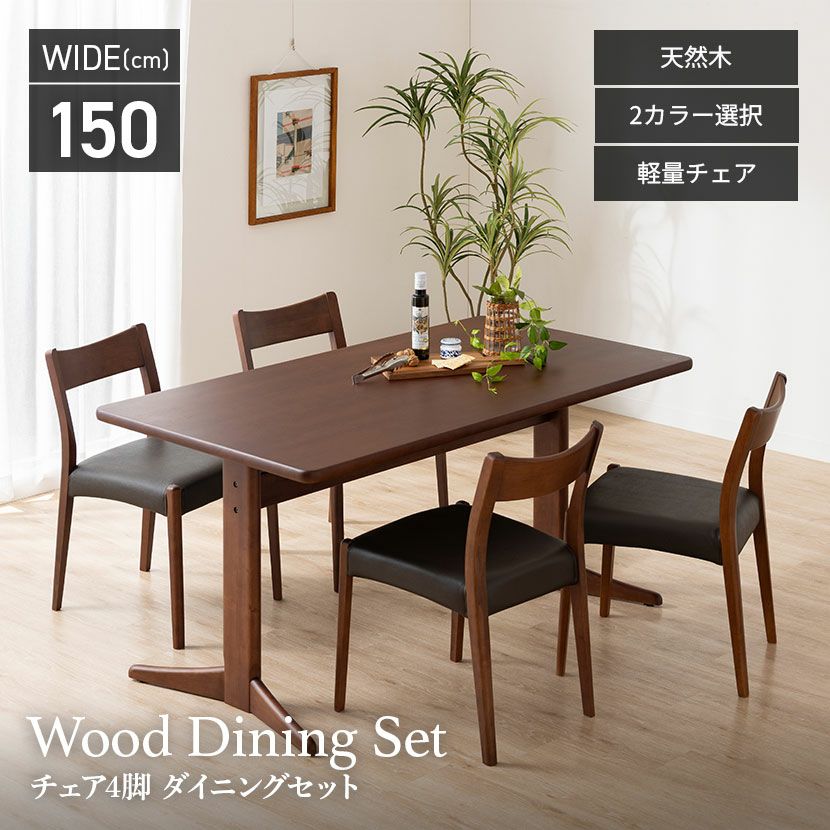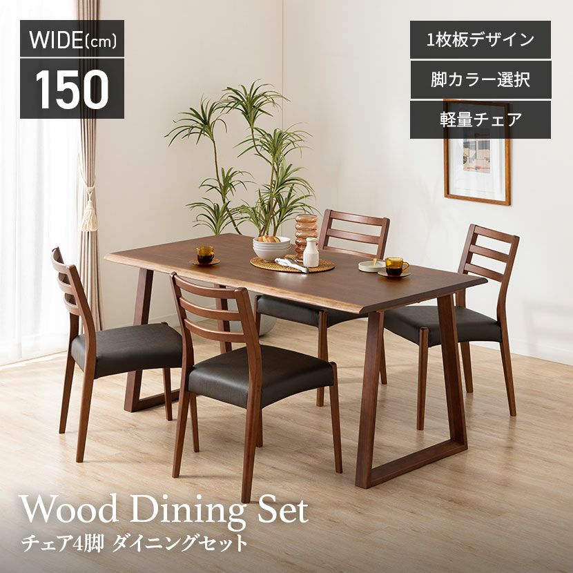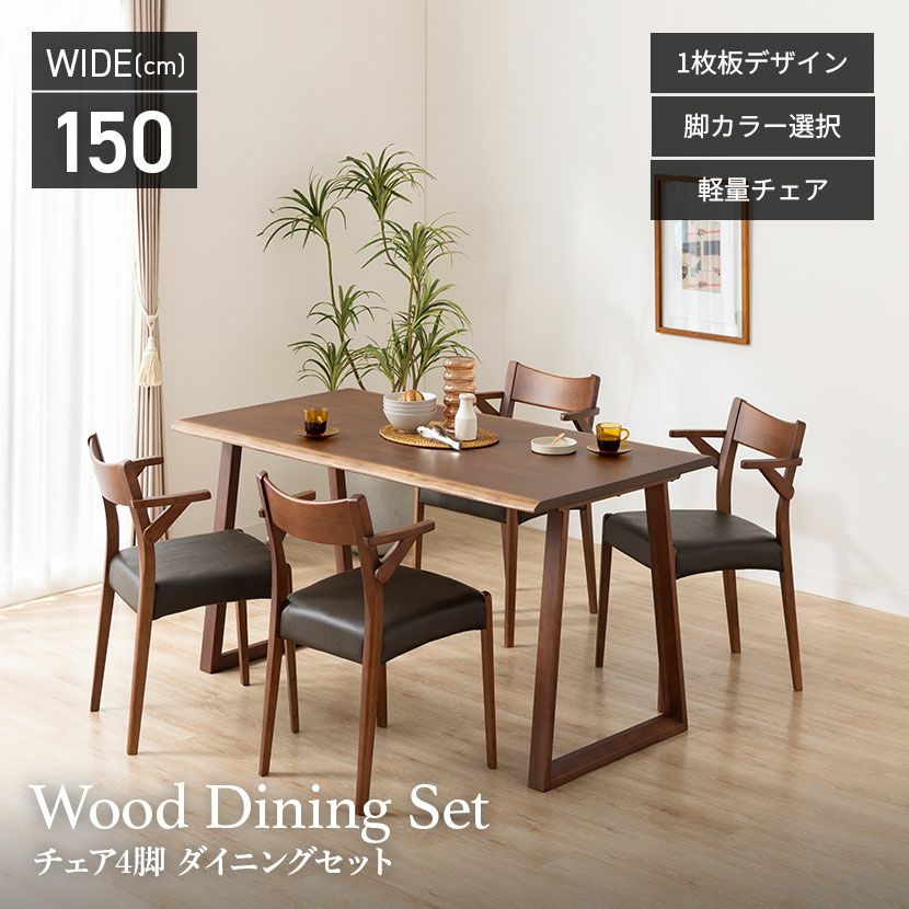 他の画像を見る 【設置無料】4人用 木製 ダイニングテーブルセット(2本脚) 5点 インスパイア 一枚板風 テーブル 天然木 肘なし コンパクト ダイニングチェア おしゃれ 和モダン (幅150cm 食卓テーブル×1 食卓椅子×4) クーポン対象 クーポン対象 送料無料 送料無料 組立設置付き 組立設置付き ¥ 149,900 税込 カートに入れる
