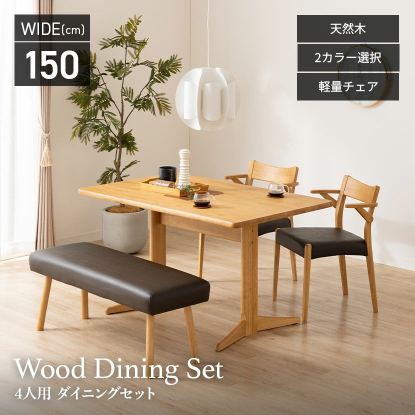 他の画像を見る 【設置無料】4人用 ダイニングセット 4点 (幅150cmテーブル×1 チェア×2 ベンチ×1) 木製 アルダー材 ダイニングテーブルセット おしゃれ ナチュラル 北欧 ウィドゥスタイル クーポン対象 クーポン対象 送料無料 送料無料 組立設置付き 組立設置付き ¥ 173,800 税込 カートに入れる