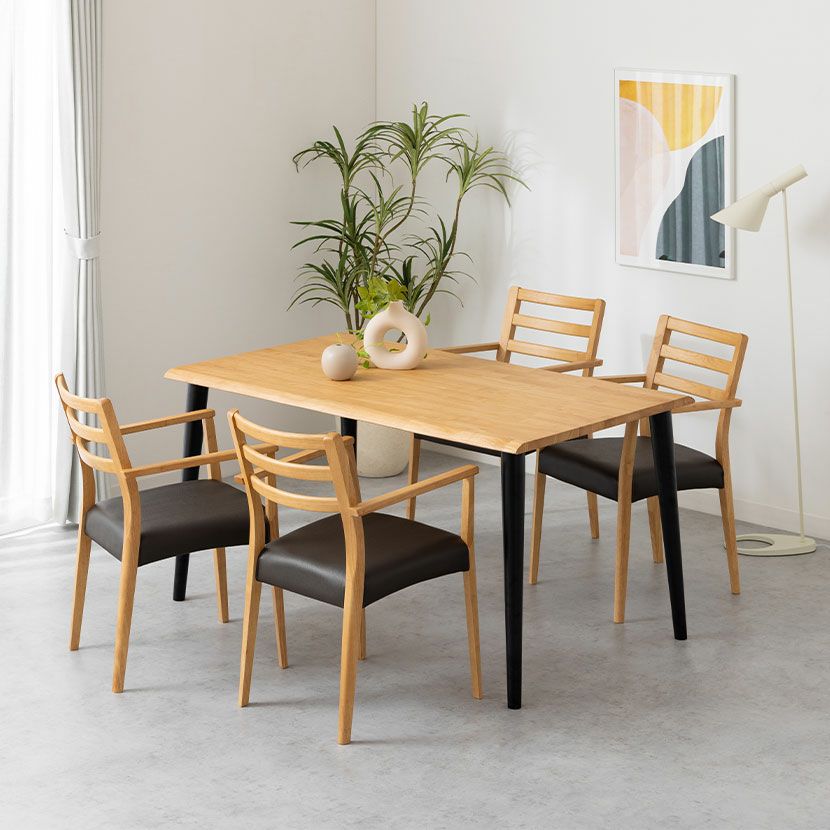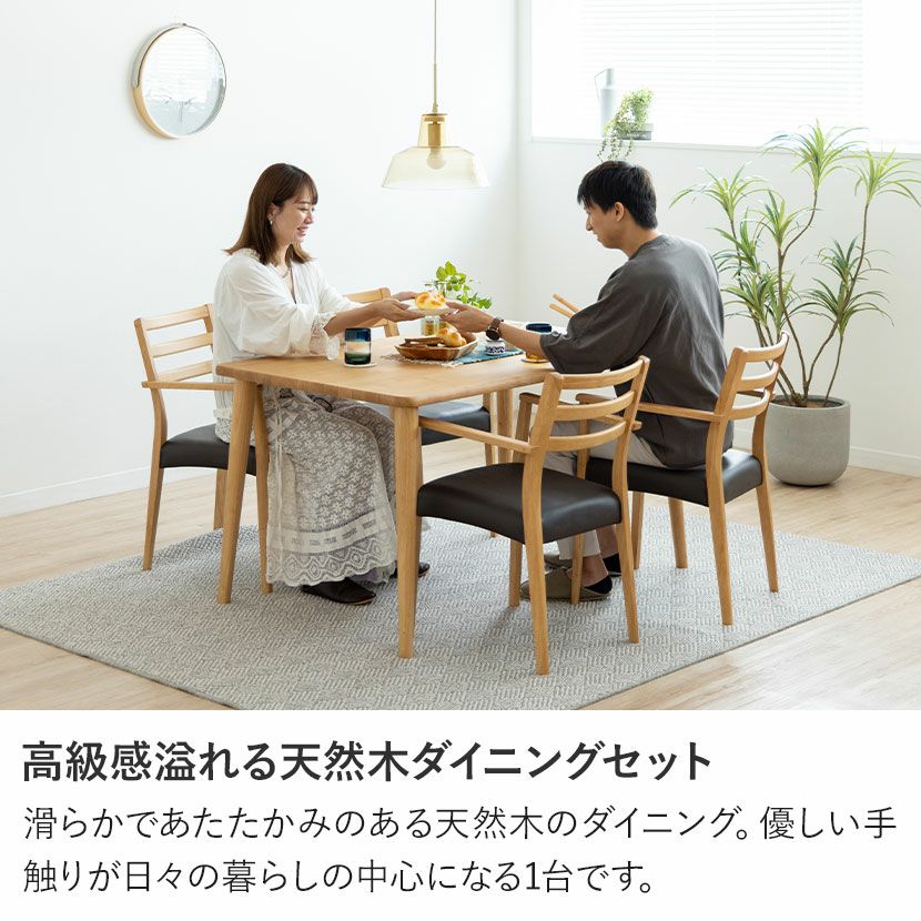 他の画像を見る 【設置無料】4人用 木製 ダイニングテーブルセット(4本脚) 5点 インスパイア 一枚板風 テーブル 天然木 肘付き ダイニングチェア おしゃれ 和モダン (幅140cm 食卓テーブル×1 食卓椅子×4) クーポン対象 クーポン対象 送料無料 送料無料 組立設置付き 組立設置付き ¥ 165,900 税込 カートに入れる