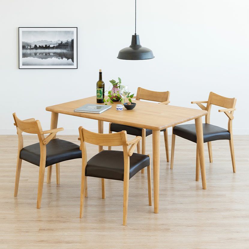 他の画像を見る 【設置無料】4人用 木製 ダイニングテーブルセット(2本脚) 5点 インスパイア 一枚板風 テーブル 天然木 肘付き コンパクト ダイニングチェア おしゃれ 和モダン (幅140cm 食卓テーブル×1 食卓椅子×4) クーポン対象 クーポン対象 送料無料 送料無料 組立設置付き 組立設置付き ¥ 159,500 税込 カートに入れる