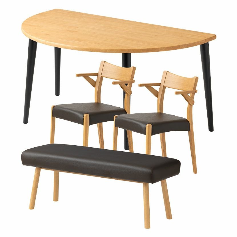 他の画像を見る 【設置無料】4人用 半円 ダイニングテーブルセット(4本脚) 4点 シンプルスタンダード 木製 テーブル 肘付き ダイニングチェア ダイニングベンチ おしゃれ 北欧 (幅150cm 食卓テーブル×1 食卓椅子×2 ベンチ×1) クーポン対象 クーポン対象 送料無料 送料無料 組立設置付き 組立設置付き ¥ 149,900 税込 カートに入れる