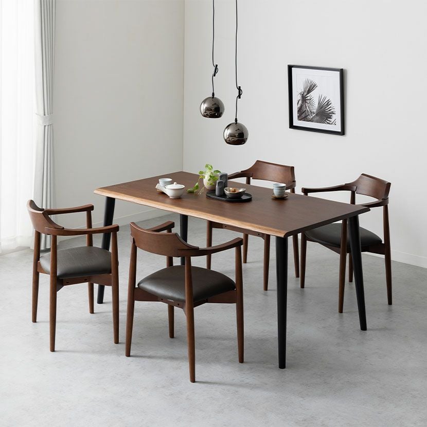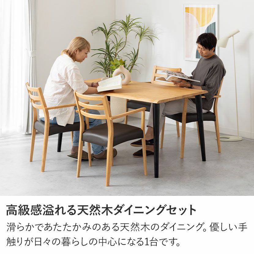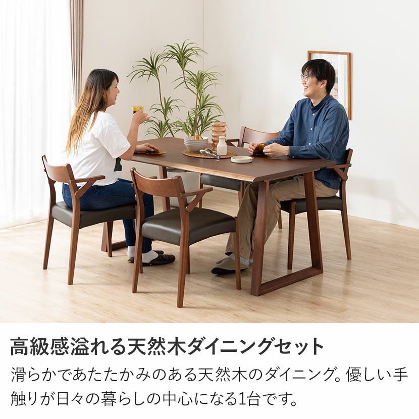 他の画像を見る 【設置無料】4人用 木製 ダイニングテーブルセット(2本脚) 5点 インスパイア 一枚板風 テーブル 天然木 肘付き コンパクト ダイニングチェア おしゃれ 和モダン (幅150cm 食卓テーブル×1 食卓椅子×4) クーポン対象 クーポン対象 送料無料 送料無料 組立設置付き 組立設置付き ¥ 164,800 税込 カートに入れる