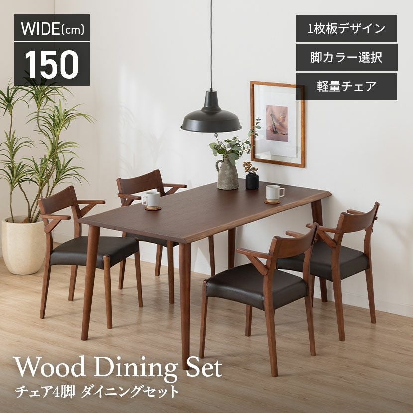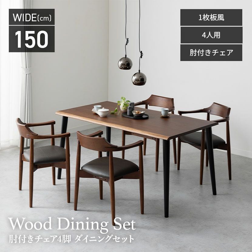 他の画像を見る 【設置無料】4人用 木製 ダイニングテーブルセット(4本脚) 5点 インスパイア 一枚板風 テーブル 天然木 肘付き コンパクト ダイニングチェア おしゃれ 和モダン (幅150cm 食卓テーブル×1 食卓椅子×4) クーポン対象 クーポン対象 送料無料 送料無料 組立設置付き 組立設置付き ¥ 159,900 税込 カートに入れる