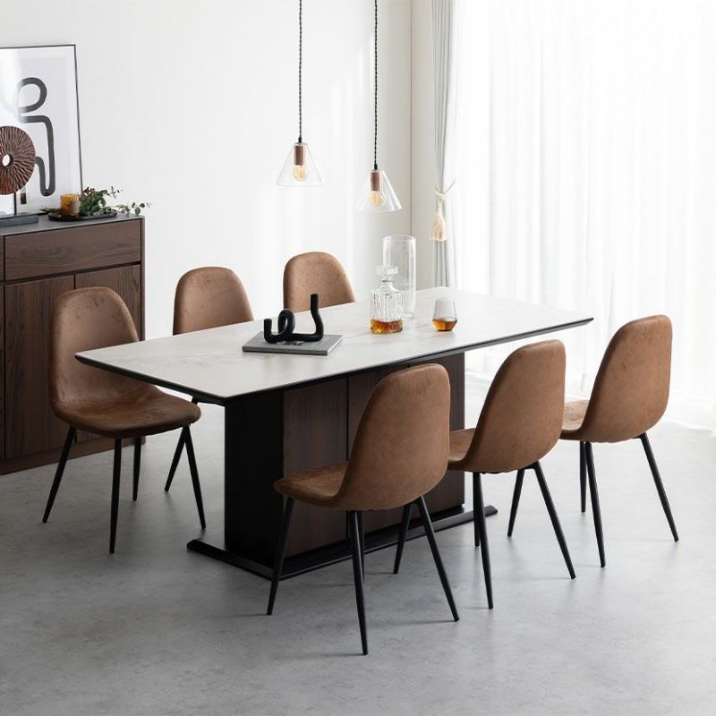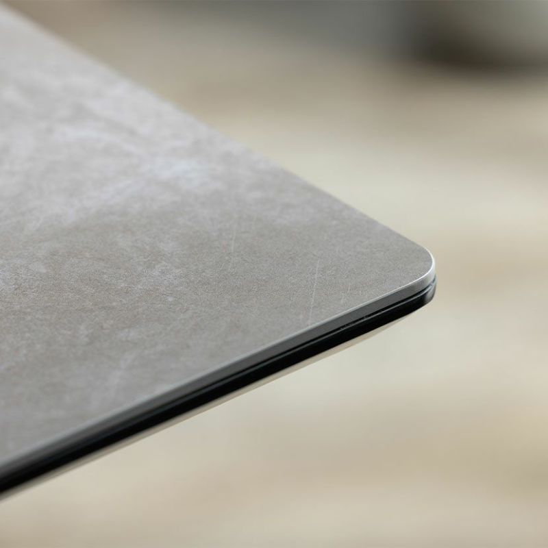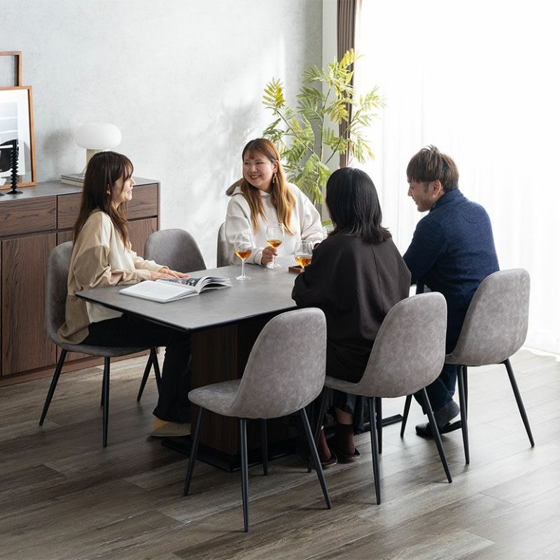 モダンなセラミック天板とスマートに空間を引き締めるスチール脚。贅沢で心地よいダイニングを演出します。