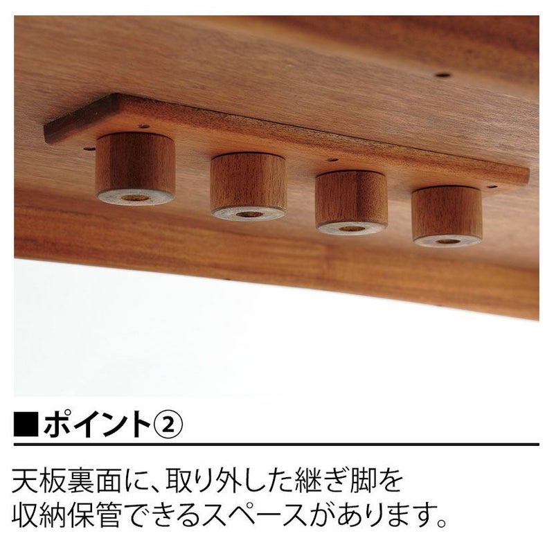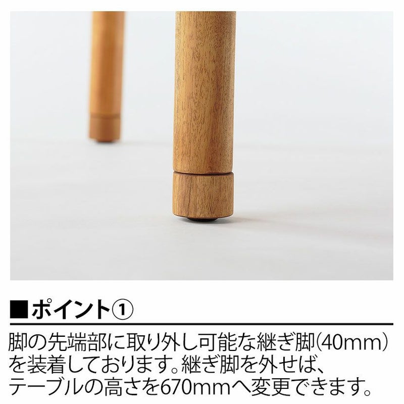テーブルの脚部は継ぎ脚式で、2段階の高さ調節が可能です。